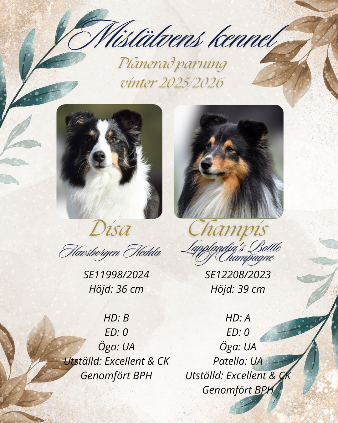 Vi planerar för parning mellan Disa & Champis i vinter.