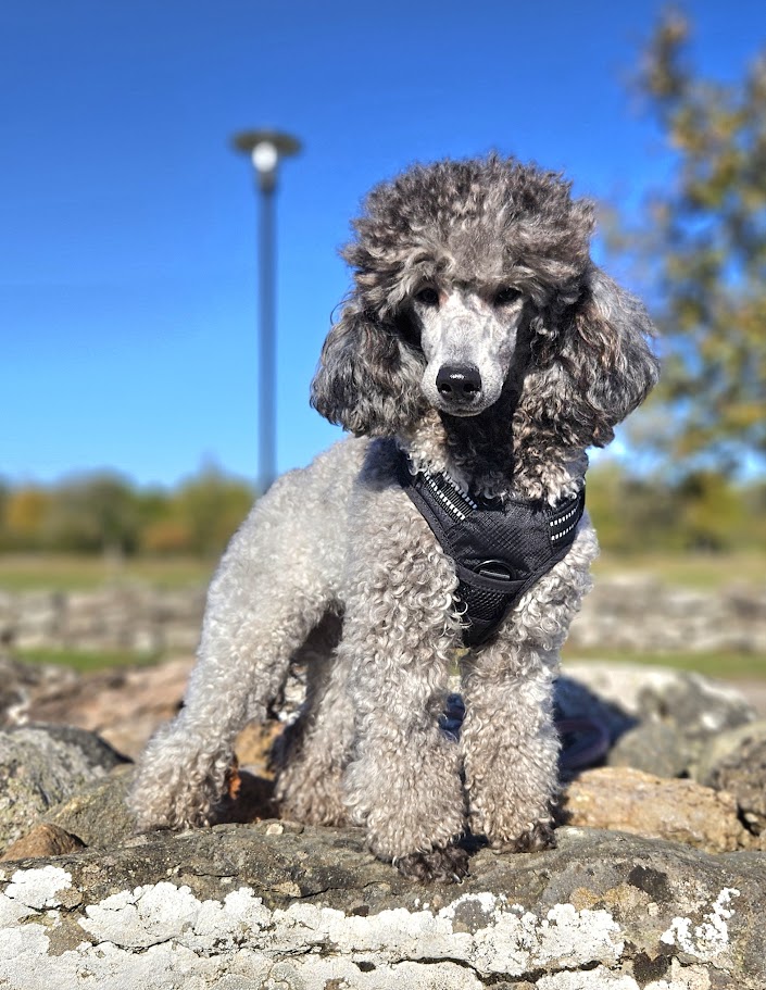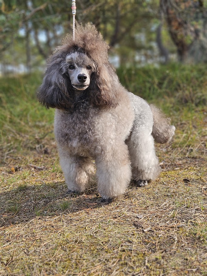 Ronya har jag haft förmånen att få var med från start när hon föddes. Ronya är uppfödd hos min syster och vår första pudel. Ronya är väldigt familjär och trevlig liten tik. Hon är följsam och lätthanterlig med stor leklust och föremålsintresse. I träning är hon lyhörd och lättmotiverad både med lek och godis. Hon har en väldigt bra av- och på knapp vilket innebär att hon lätt kan koppla av i hemmet och i nya miljöer. Hon älskar att gosa och ligger gärna i knät. Gillar barn och går bra ihop med andra hundar. Är blyg inför främmande personer och vill gärna få bekanta sig i lugn och ro. Ronya har ställts ut i valpklass och officiellt i juniorklass. Hon är fri från PRA-prcd och PRA-rcd4.